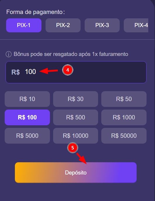 Quer depositar de forma rápida e prática na 7700bet? Veja abaixo o passo a passo para realizar seu depósito usando QR Pay, uma das formas mais simples e seguras de pagamento: